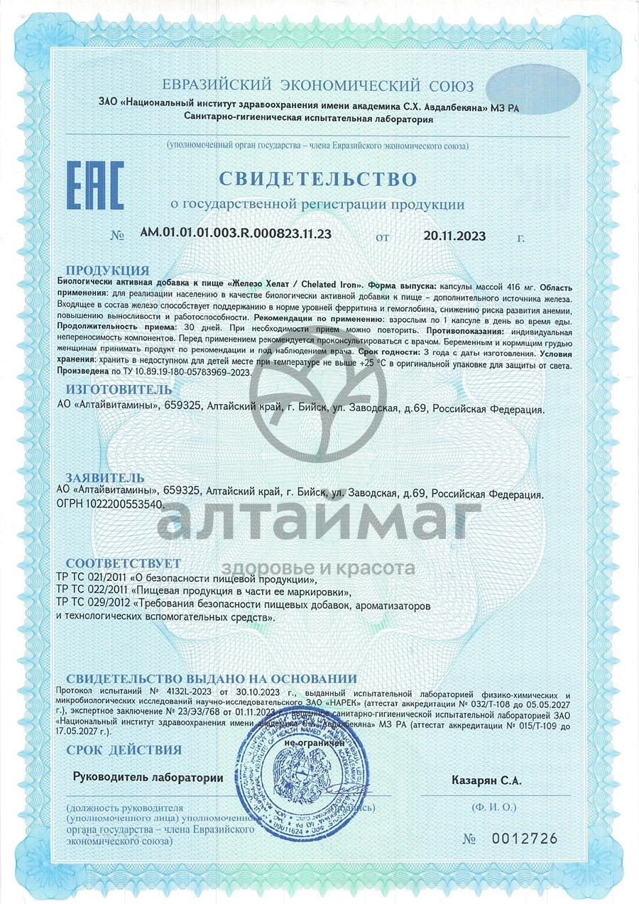 Есть вопросы по товару "Железо Хелат Алтайвитамины 60 капсул"?